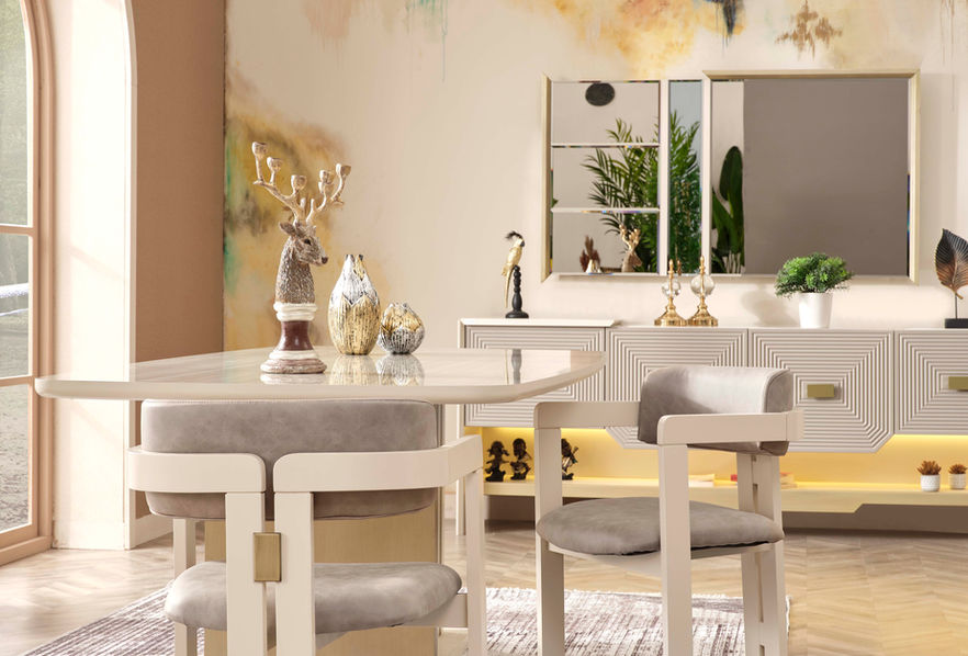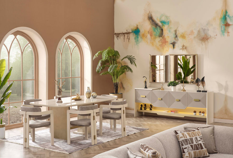 Sade Tasarım: Karmaşık detaylardan uzak, sade ve temiz hatlara sahip tasarımlar, Urla yemek odalarının karakteristik özelliklerindendir.